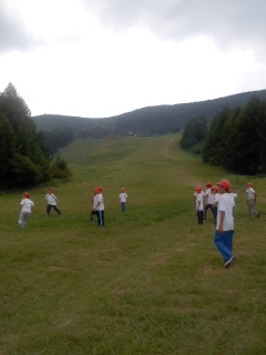 15時から高原遊びをしています。自然の中で思い思いの活動を楽しんでいます。
