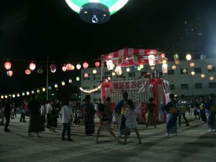 終盤、子どもたちには、きらきら光る指輪(17日は光るうちわ)とお菓子がプレゼントされました。