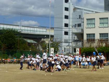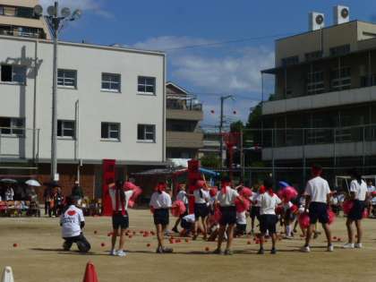 1年生の「ゲラゲラ玉入れポー」の様子です。