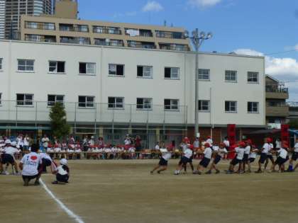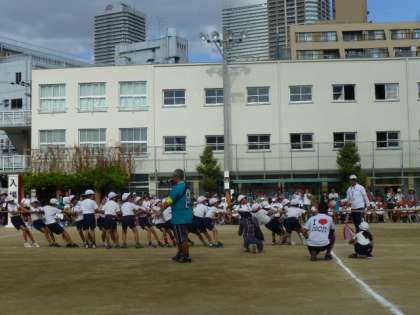 3,4年生の団体競技「力いっぱい引っぱって」の様子です。