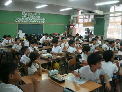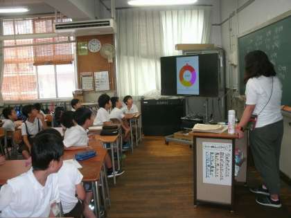 ルーレットで夏休みの思い出を発表する班を決めます。