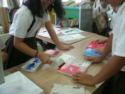係の児童に貸し出しのチェックをしてもらいます。