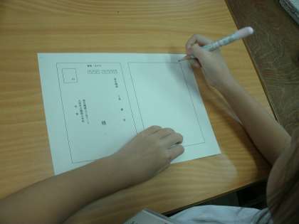 3年生は、敬老の日に地域の方々に送るハガキの下書きを書いていました。