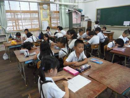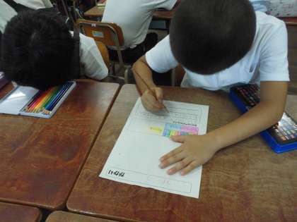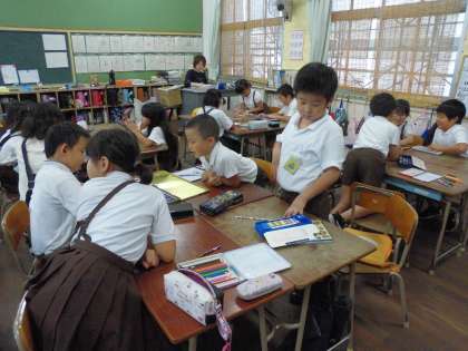 2年2組は、係に分かれて、係活動の掲示物を作成中でした。