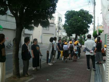 毎月第1・第3月曜日の朝は、港区更生保護女性会の皆様による「愛の一声運動」が行われます。