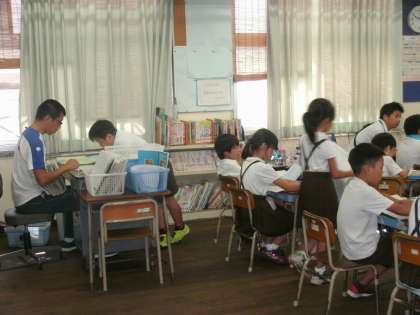 夏休みの「楽しかったことベスト3新聞」を仕上げていました。