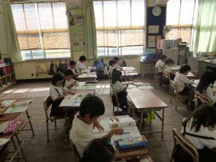 1年生は、算数の時間に「3つのかずのけいさん」の学習をしていました。3つの数を足したり引いたりして答えを求める学習です。
