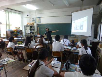 6年生の社会科は、日本の歴史を学習しています。明治時代に活躍した人物について学習していました。写真やビデオなどの視聴覚教材を使って、学習しています。