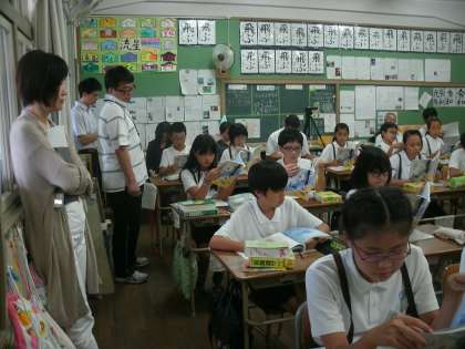 港区内の各小学校の国語主任が集まり授業を参観しました。