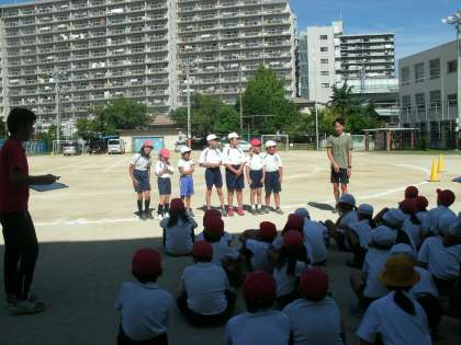 熱中症予防のため、練習前、練習中、練習後には水分補給と休憩タイムを設けています。
