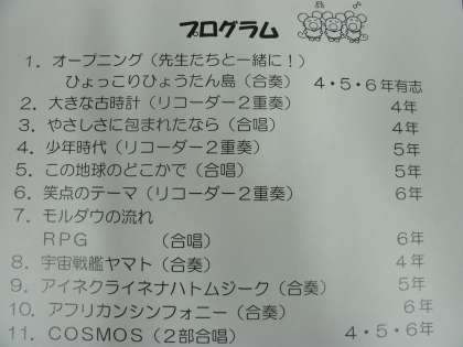 学習参観は、講堂で4・5・6年生合同の音楽発表会を行いました。