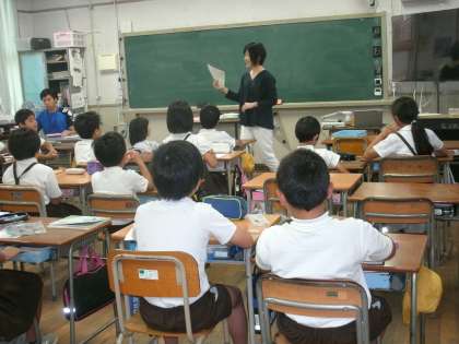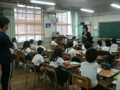 漢字テストの前に、3連休中の出来事について、発表しあっていました。