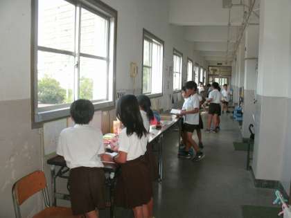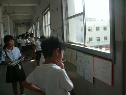 4年生が国語の授業で作成した広告を見て、どの広告が一番良かったか投票をしていました。「あなたが選ぶ広告賞」のキャッチコピー賞とグッド広告賞を選んでいました。