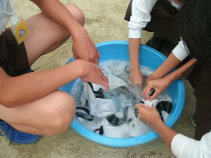 洗濯実習をしていました。