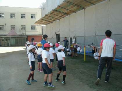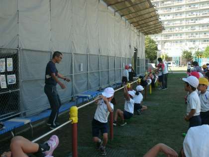 鉄棒運動をしていました。いろいろな技に挑戦しています。