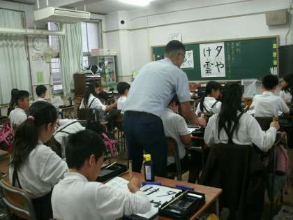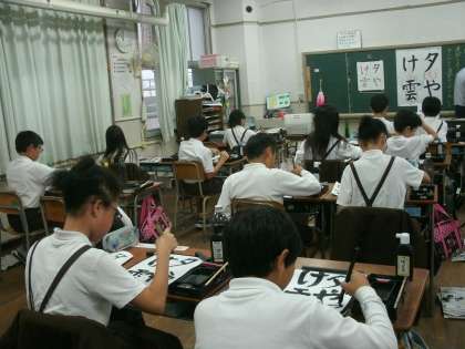 毛筆で「夕やけ雲」の練習をしていました。