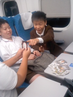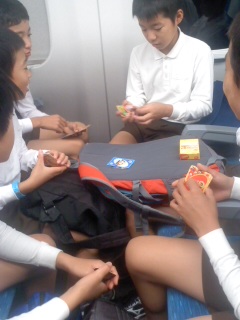 トランプやウノで楽しく過ごしています。今、新神戸です。