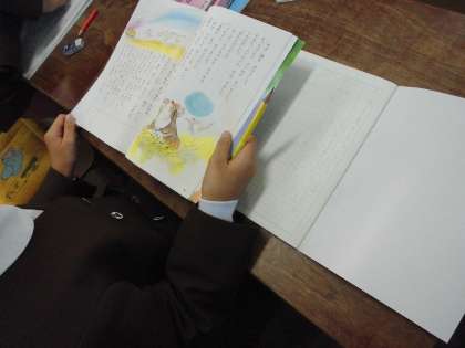 国語「名前をみてちょうだい」という物語を学習しました。「名前を食べられる」ということはどんな意味かなという課題で学習に取り組みました。子どもたちはよく考えて自分の意見を書いていました。