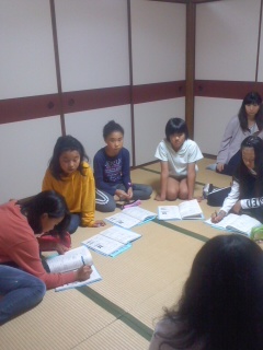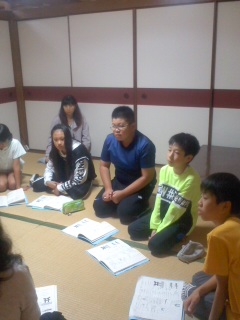 班長会議をしています。今日1日の振り返りと明日の予定の確認をします。