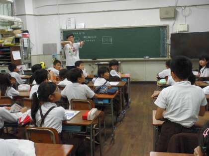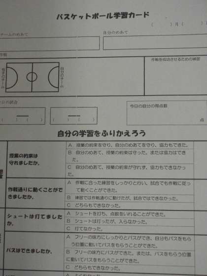 体育でバスケットボールの学習をしています。今日は、教室でルールの確認をしました。パスやドリブルの動きでどんな動きがセーフなのか実演しながら確認しました。ルールを守って楽しく活動してほしいと思います。
