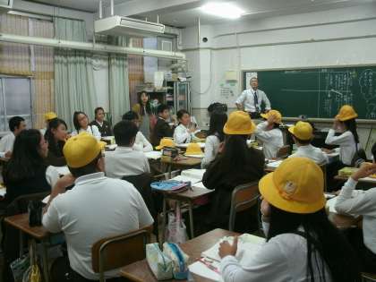 「ヒロシマのうた」の学習で、何も知らないことは本当に幸せか、幸せではないか、討論していました。黄帽子の着脱で自分はどう思うか意思表示をしています。