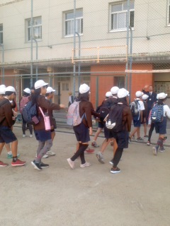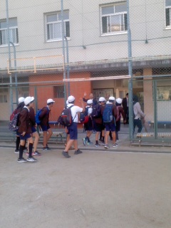 6年生は長居陸上競技場へスポーツ交歓会参加のため出発しました。