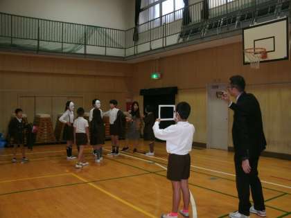 「注文の多い料理店」の「部屋はけむりのように消え、二人は、寒さにぶるぶるふるえて、草の中に立っていました。見ると、上着や靴や財布やネクタイピンは、あっちの枝にぶら下がったり、こっちの根もとに散らばったりしています。風がどうとふいてきて、草はザワザワ、木の葉はカサカサ、木はゴトンゴトンと鳴りました。犬が、フーとうなってもどってきました。…(略)…みのぼうしをかぶった専門のりょう師が、草をザワザワ分けてやってきました。」という場面を1枚のフレームにおさめるという活動をしていました。