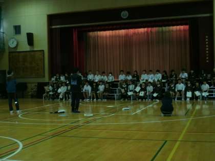 4年生は、講堂で、学習発表会の練習をしていました。