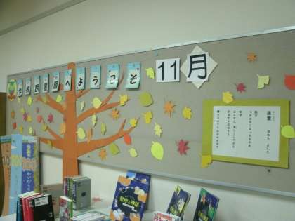 図書館補助員さんが作成してくださった11月の壁面掲示です。