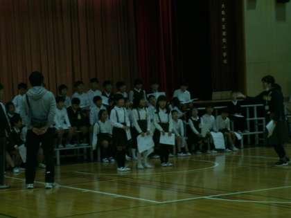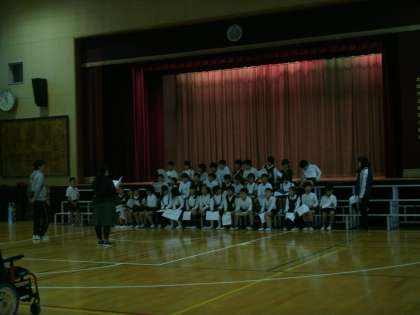 3年生は、講堂で学習発表会の練習をしていました。