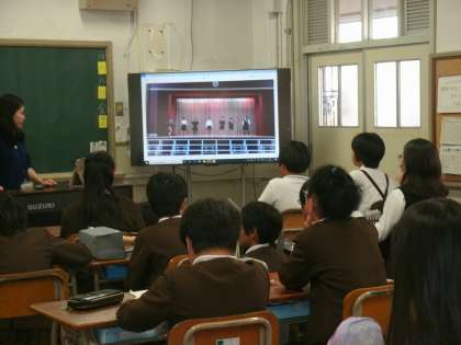 6年1組は、学習発表会の練習風景を撮影した映像を見ながら、声の大きさや速さ、動作のわかりやすさなど、お互いの演技について感想を出し合っていました。課題が見つかると、どのように修正していけばより良くなるか、考えていました。