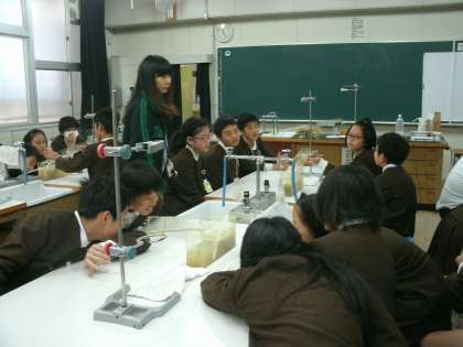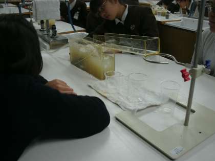 「大地のつくりと変化」の学習で地層のしくみを理解するための実験をしていました。