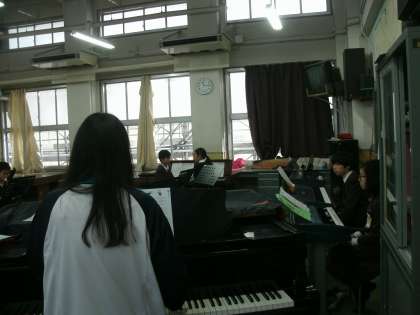 5年生は、音楽室と教室に分かれて、「キリマンジャロ」の合奏の練習をしていました。