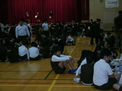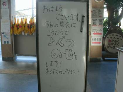 今朝の児童集会は、集会委員会の「上ぐつのせ」です。
