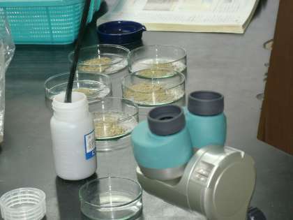 6年1組は、理科室で観察をしていました。