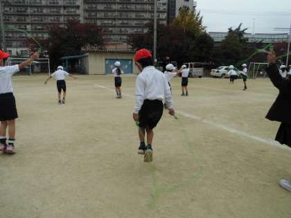 1年は2時間目は1組、2組ともに体育でした。鉄棒となわとびをしました。鉄棒では、ふとんのような基本の技からさかあがりのような難しい技まで練習しました。1年生でもさかあがりができる子どもがいたことに驚きました。なわとびでは、ふつうにまえまわしとびをするだけでなく、10秒間ひっかからずにとぶことに挑戦しました。すこしずつ寒くなってきていますが、元気に活動しています。