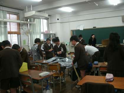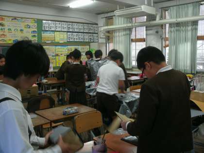 6年1組は、学習発表会で使う小道具を協力して作っていました。