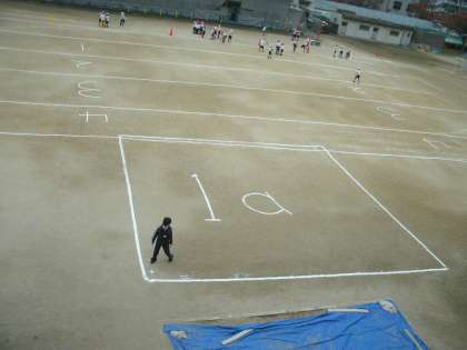 1aの広さを運動場に白線で示し、廊下の窓から眺めて広さを確認していました。