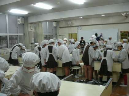 5年生は、家庭科室で調理実習をしていました。