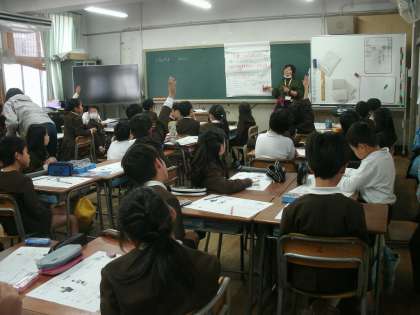 「トランペットふきの休日」を鑑賞した後で、トランペットとホルンの音色を聞き比べていました。曲の感想や気づいたことをプリントに書き込んでいました。