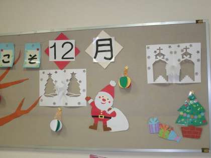 壁面が12月の掲示にかわっていました。ありがとうございます。(まだ作成途中だそうです。)