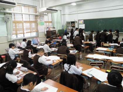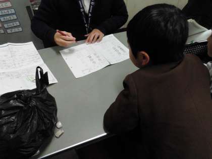 くりあがりのある足し算・引き算のプリントをしました。できたら先生にチェックしてもらいました。