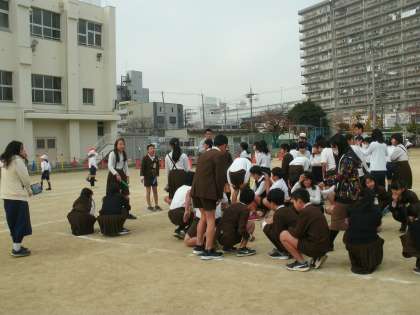 今日は、5年生A・Bと6の1,6の2の4チームが競い合いました。