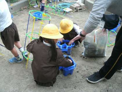 学習園でチューリップの球根の植え付けをしていました。