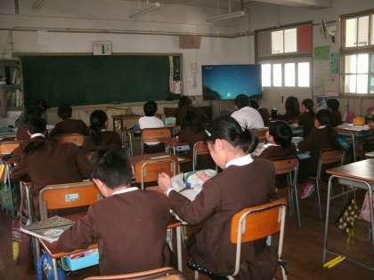 冬の夜空の映像を見ながら、星の動きについて学習していました。