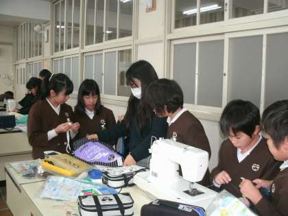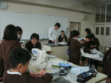 ミシン縫いが終わった人は、アイロンをかけて仕上げの作業をしていました。