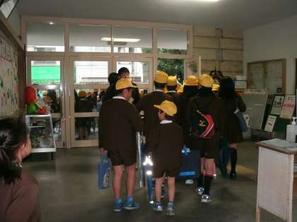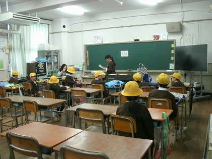 班員、集合時刻、集合場所などの確認をし、3学期も安全に集団登校ができるようにします。終了後は、各地区別の班ごとに集団下校をしました。