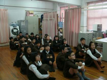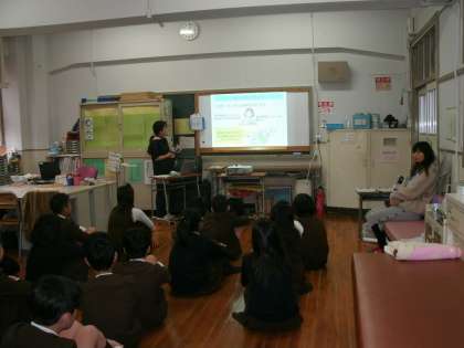 6年2組は、保健室で二測定の前に保健指導を受けていました。