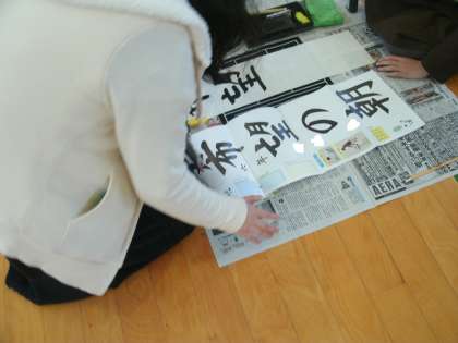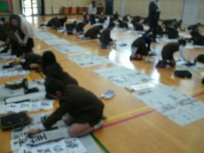6年生も体育館で書初めをしました。