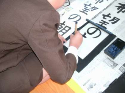 手本を見ながら、力強く「希望の朝」と書いていました。